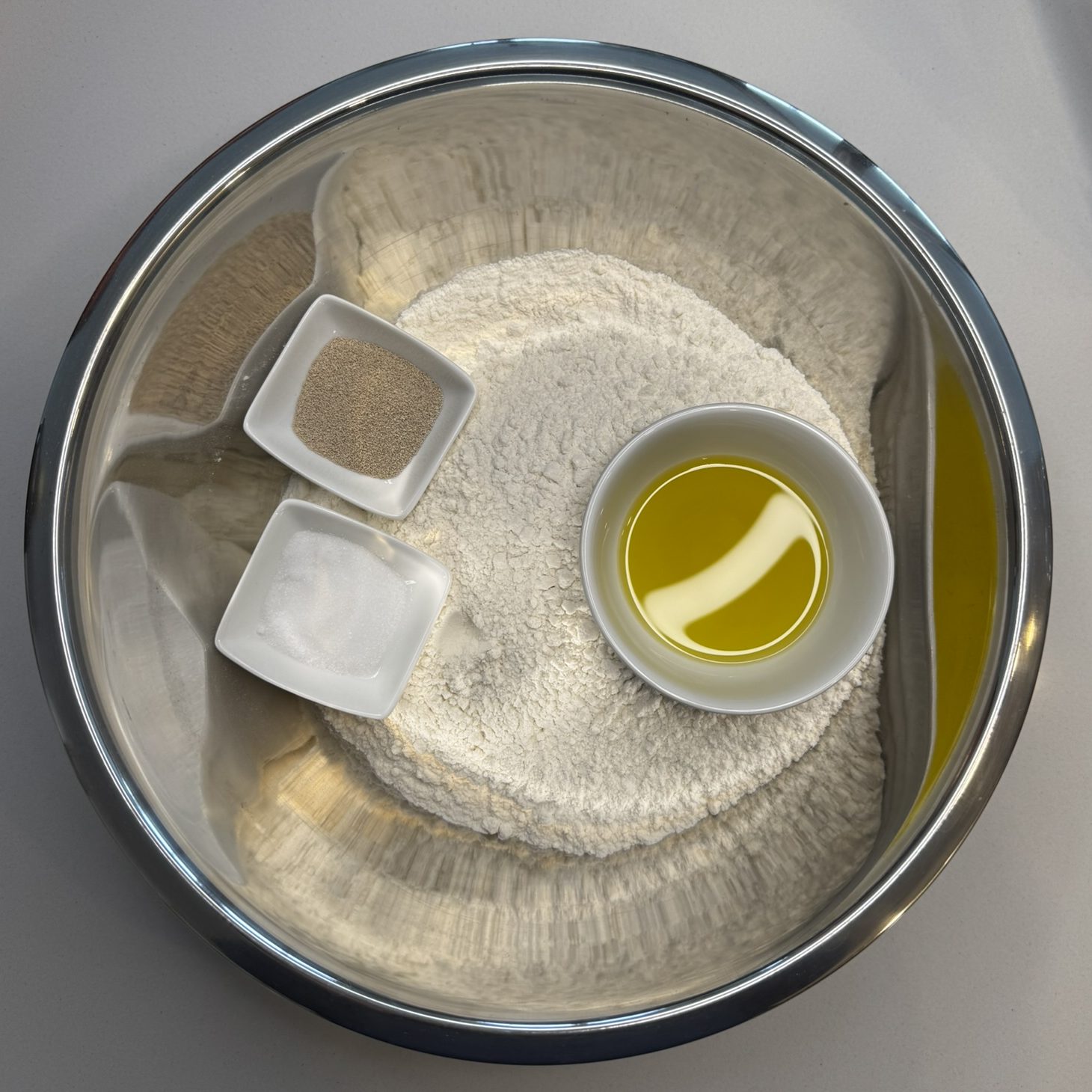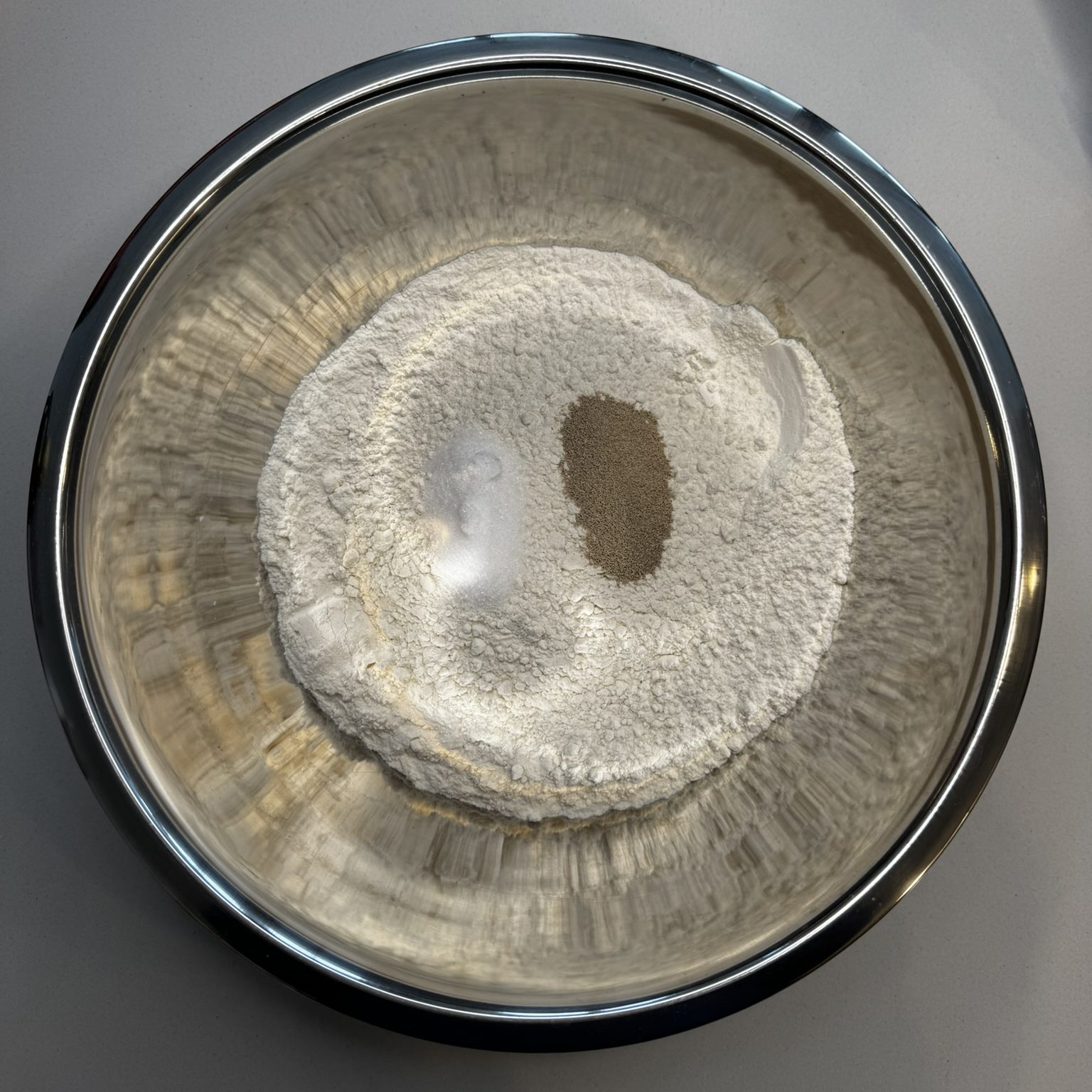 Mix all the dry ingredient in a big bowl (flour, yeast and salt).